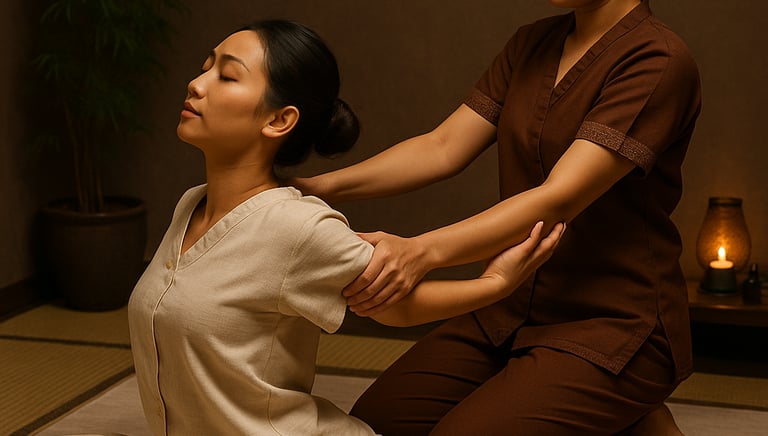 Ancient Thai healing art of deep tissue stretching to relieve muscle tension throughout the body to encourage good circulation for natural balance and positive energy.